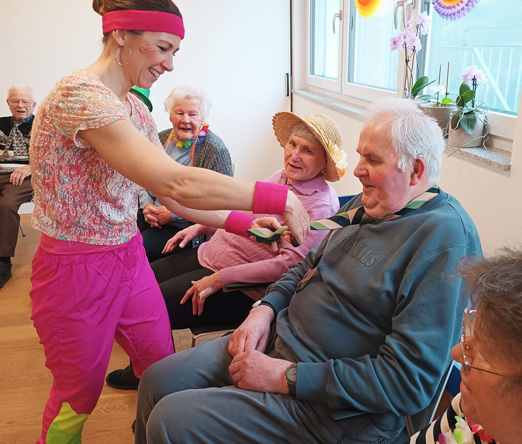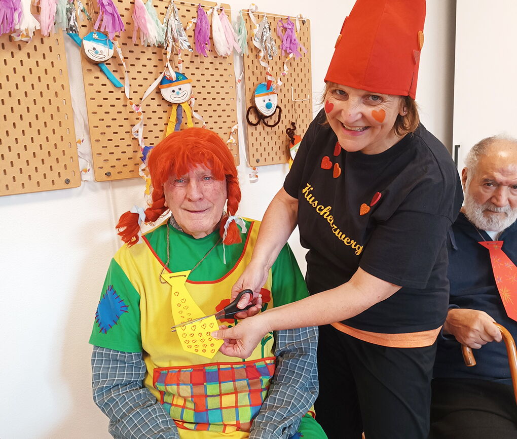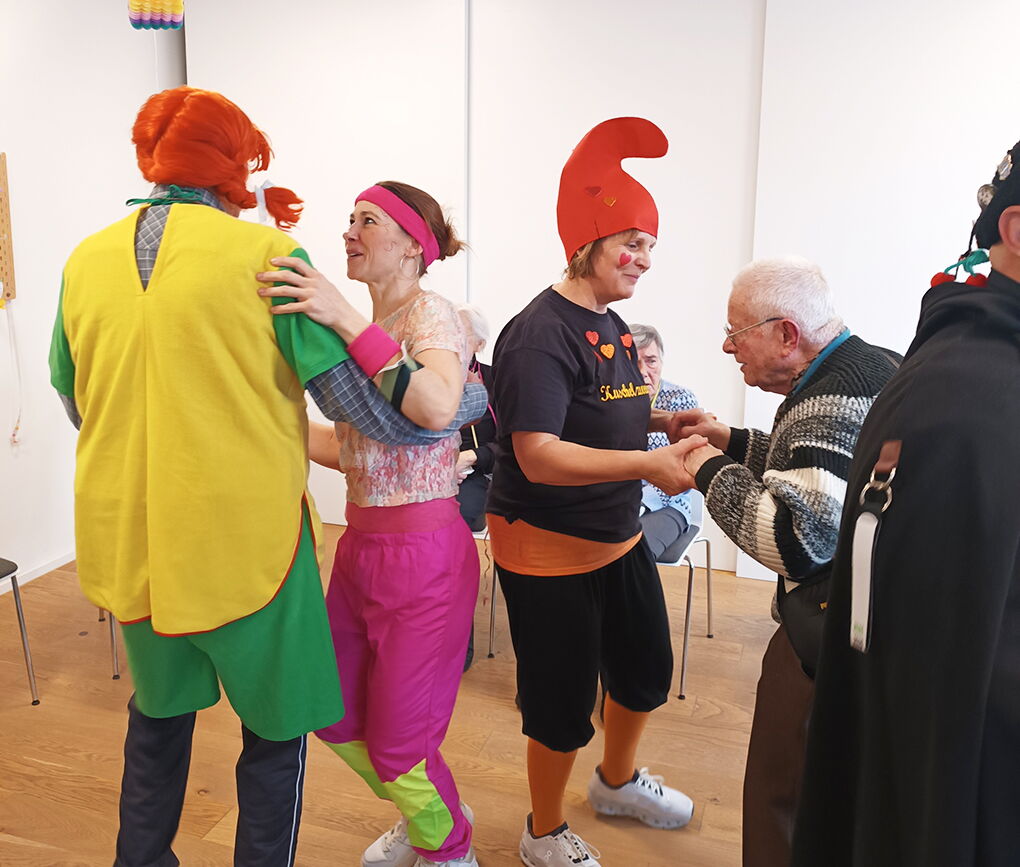 Letzte Woche wurde es bei uns in der Tagespflege Buch richtig bunt und närrisch – wir haben die fünfte Jahreszeit nochmal gebührend gefeiert! Ganz traditionell starteten wir kulinarisch in den Tag: Gemeinsam haben wir frische Krapfen gebacken. Der süße Duft zog durchs ganze Haus und verbreitete sofort fröhliche Faschingsstimmung. Neben Verkleiden, Tanzen und einer langen Polonaise durch das Haus durfte aber eine weitere Tradition nicht fehlen: Die Krawatten der Herren waren nicht mehr sicher – schnipp, schnapp, Krawatte ab! Ein echtes Highlight war der Besuch der Bucher Faschingszunft. Die „Schloßberg-Grodda“ sorgten in ihren Häsen für strahlende Gesichter, beste Stimmung und brachten ein Stück Fasnacht mitten in unsere Tagespflege. Es war ein rundum gelungener Glombiger Donnerstag! Ein herzliches Danke an die „Schloßberg-Grodda“ sowie an alle Faschingslustigen, die diesen Tag so besonders gemacht haben!